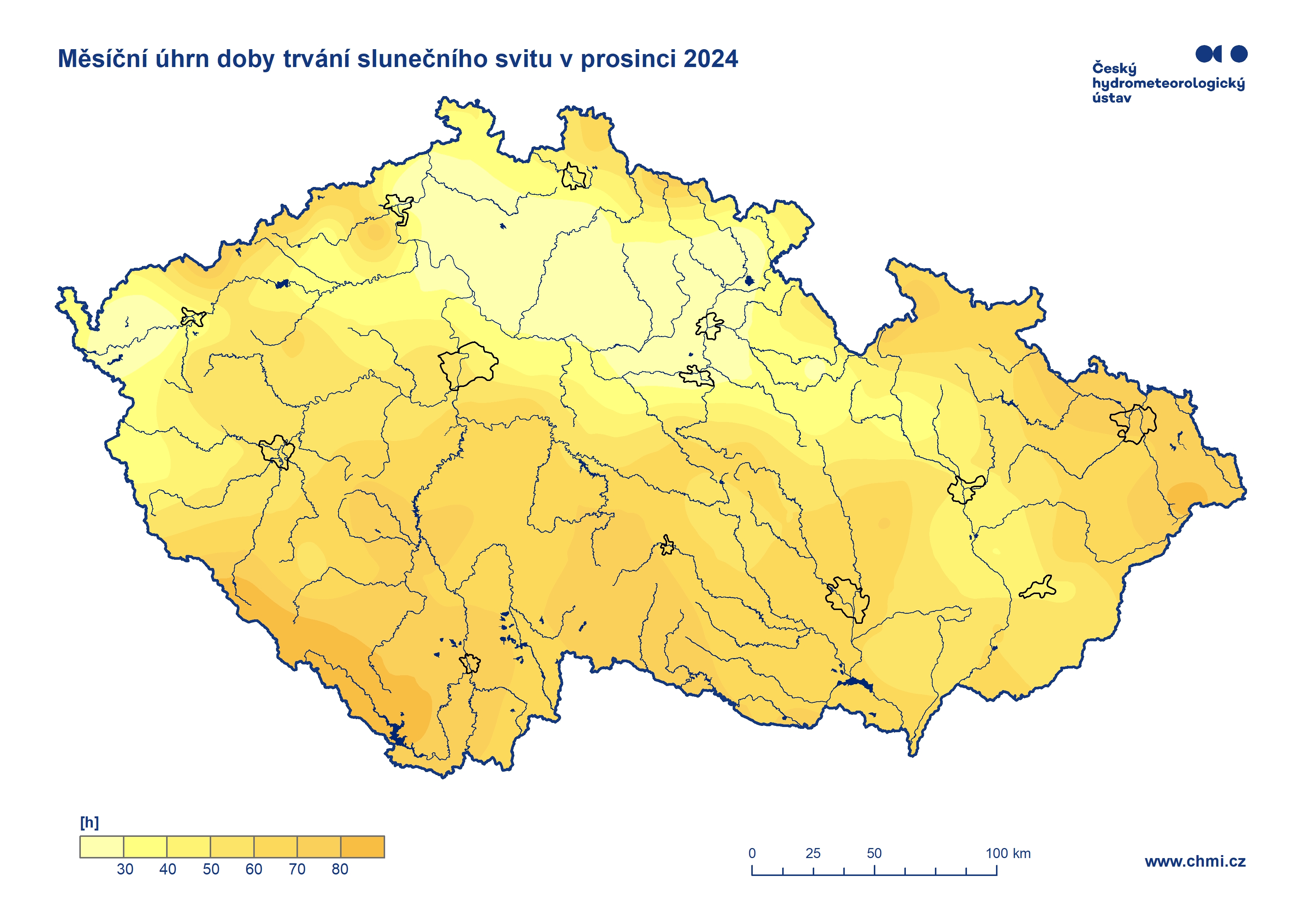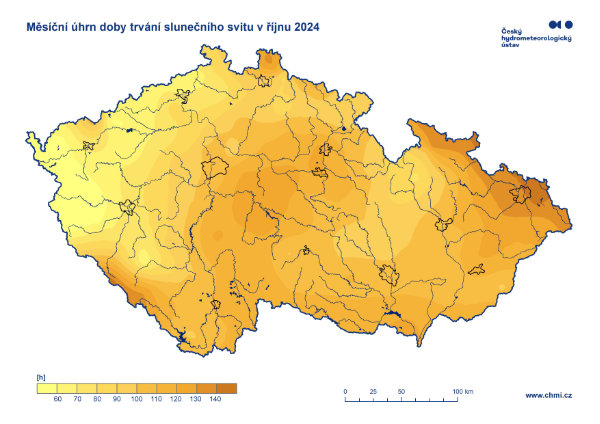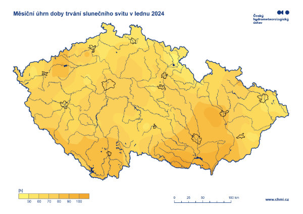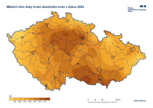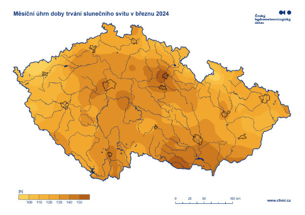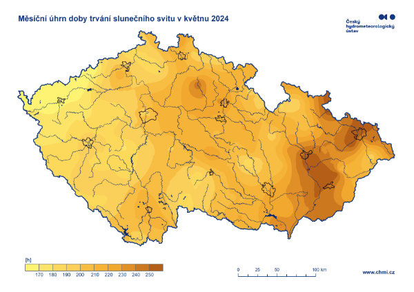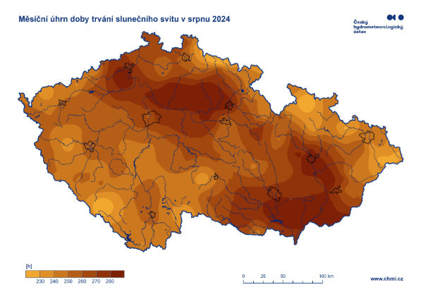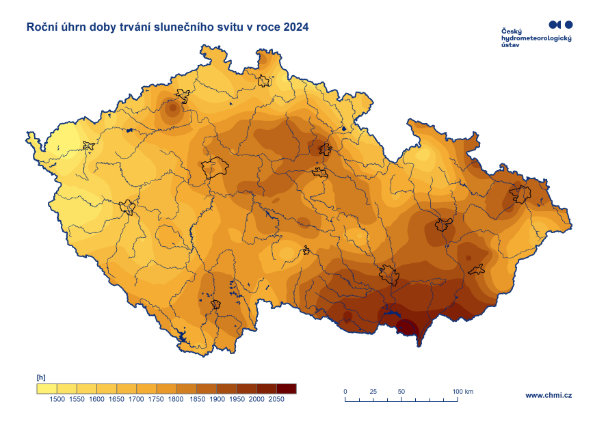 Za dobu trvání slunečního svitu je považován časový interval mezi východem a západem Slunce, v průběhu kterého není sluneční kotouč zakryt oblačností nebo jinými překážkami, V roce 2024 dosáhla průměrná doba trvání slunečního svitu na území ČR hodnoty 1764,7 h což je 104 % ročního normálu 1991–2020. V průměru v roce 2024 svítilo Slunce o 51,0 h více než v předchozím roce. Nejvyšší doby trvání slunečního svitu byly zaznamenány na jižní Moravě, na stanici Lednice to bylo 2082,4 h.