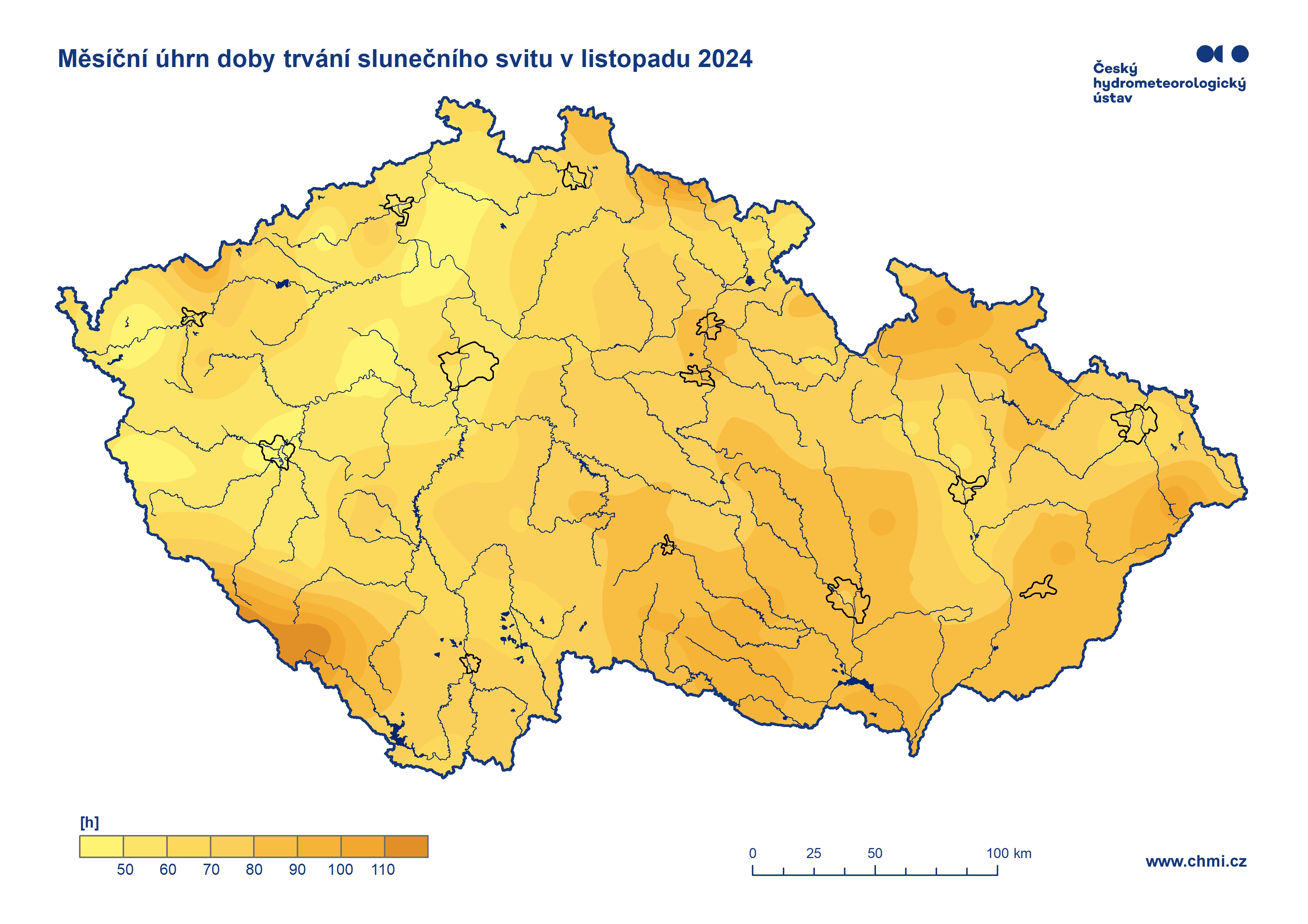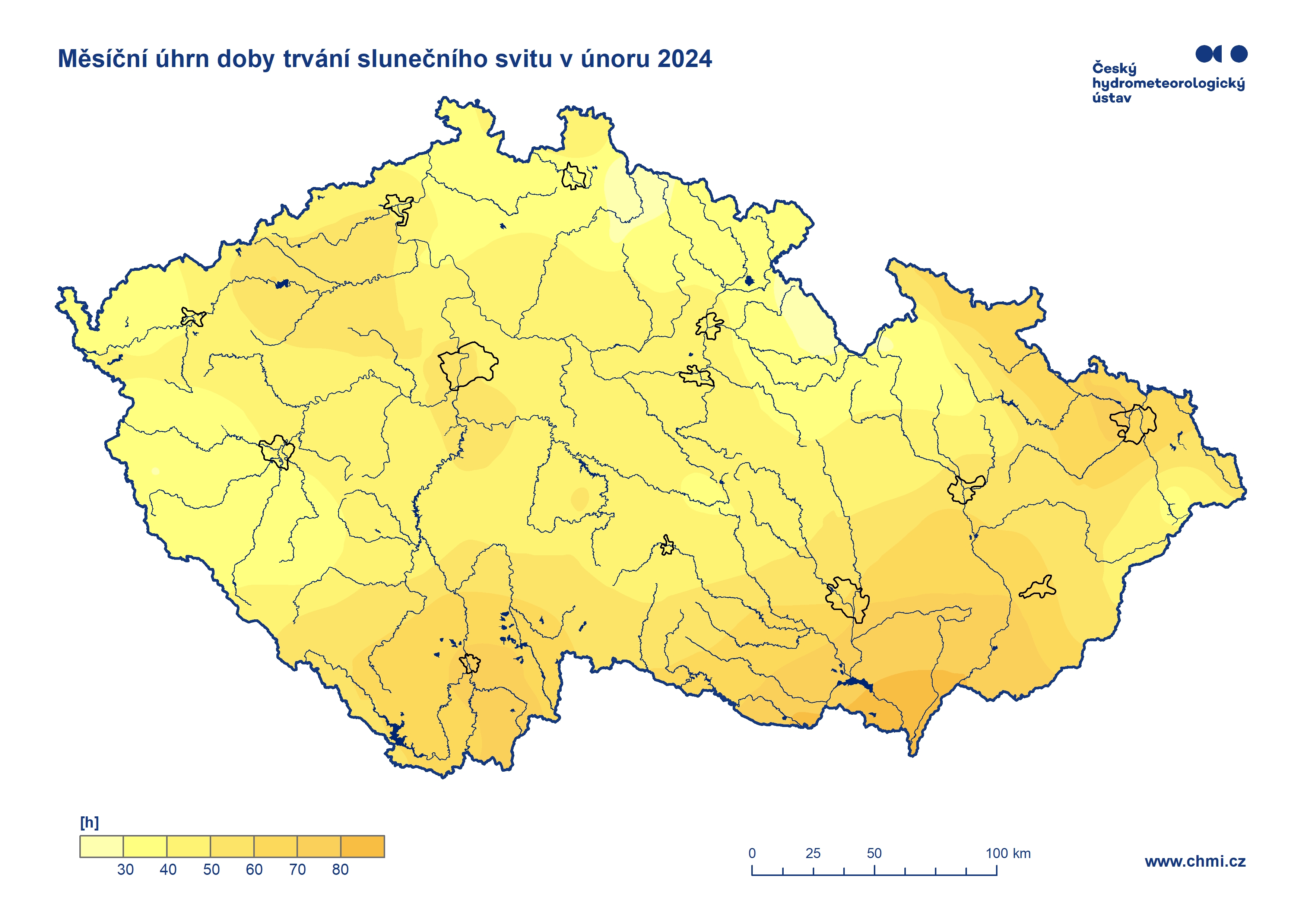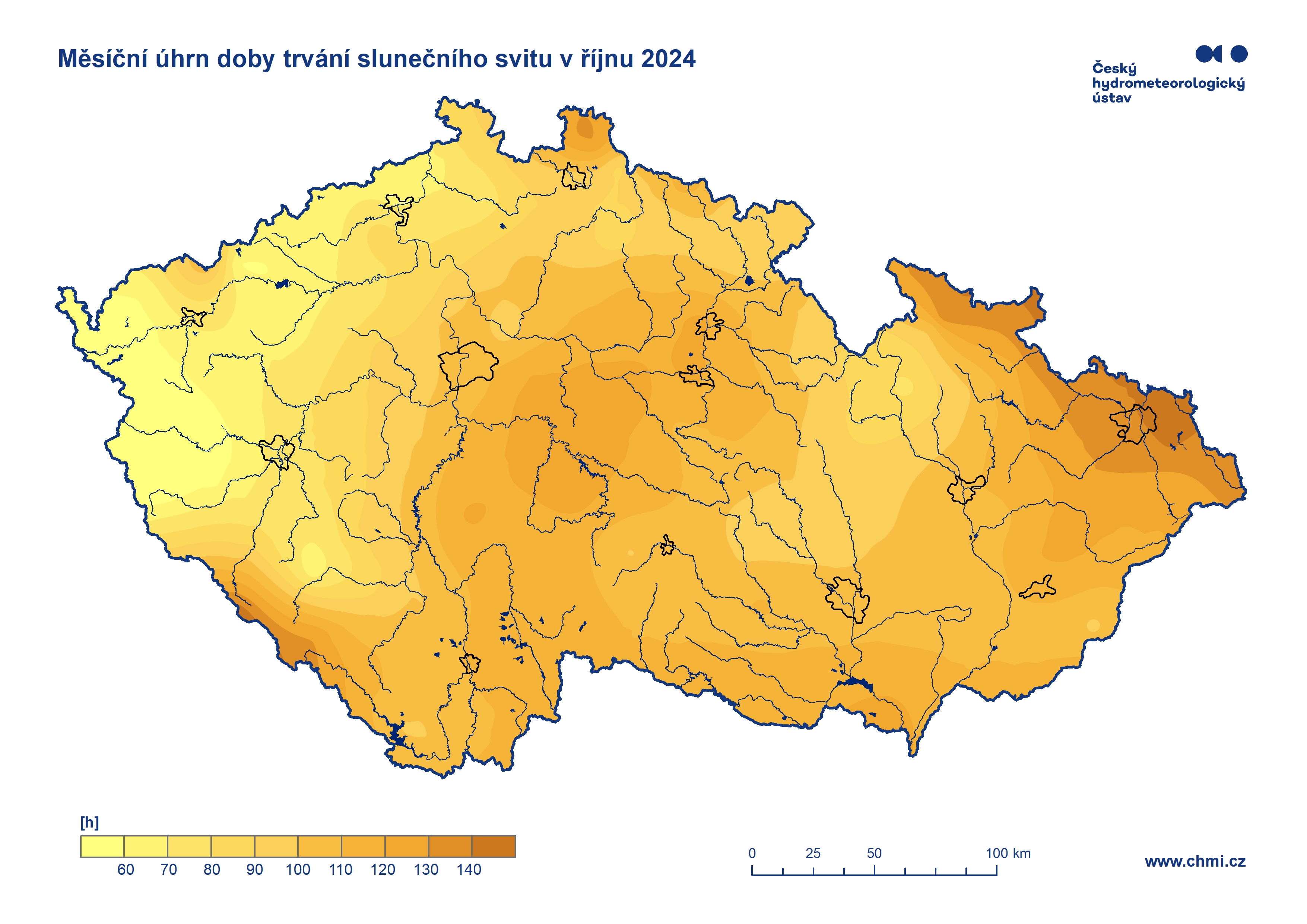 Za dobu trvání slunečního svitu je považován časový interval mezi východem a západem Slunce, v průběhu kterého není sluneční kotouč zakryt oblačností nebo jinými překážkami, V roce 2024 dosáhla průměrná doba trvání slunečního svitu na území ČR hodnoty 1764,7 h což je 104 % ročního normálu 1991–2020. V průměru v roce 2024 svítilo Slunce o 51,0 h více než v předchozím roce. Nejvyšší doby trvání slunečního svitu byly zaznamenány na jižní Moravě, na stanici Lednice to bylo 2082,4 h.